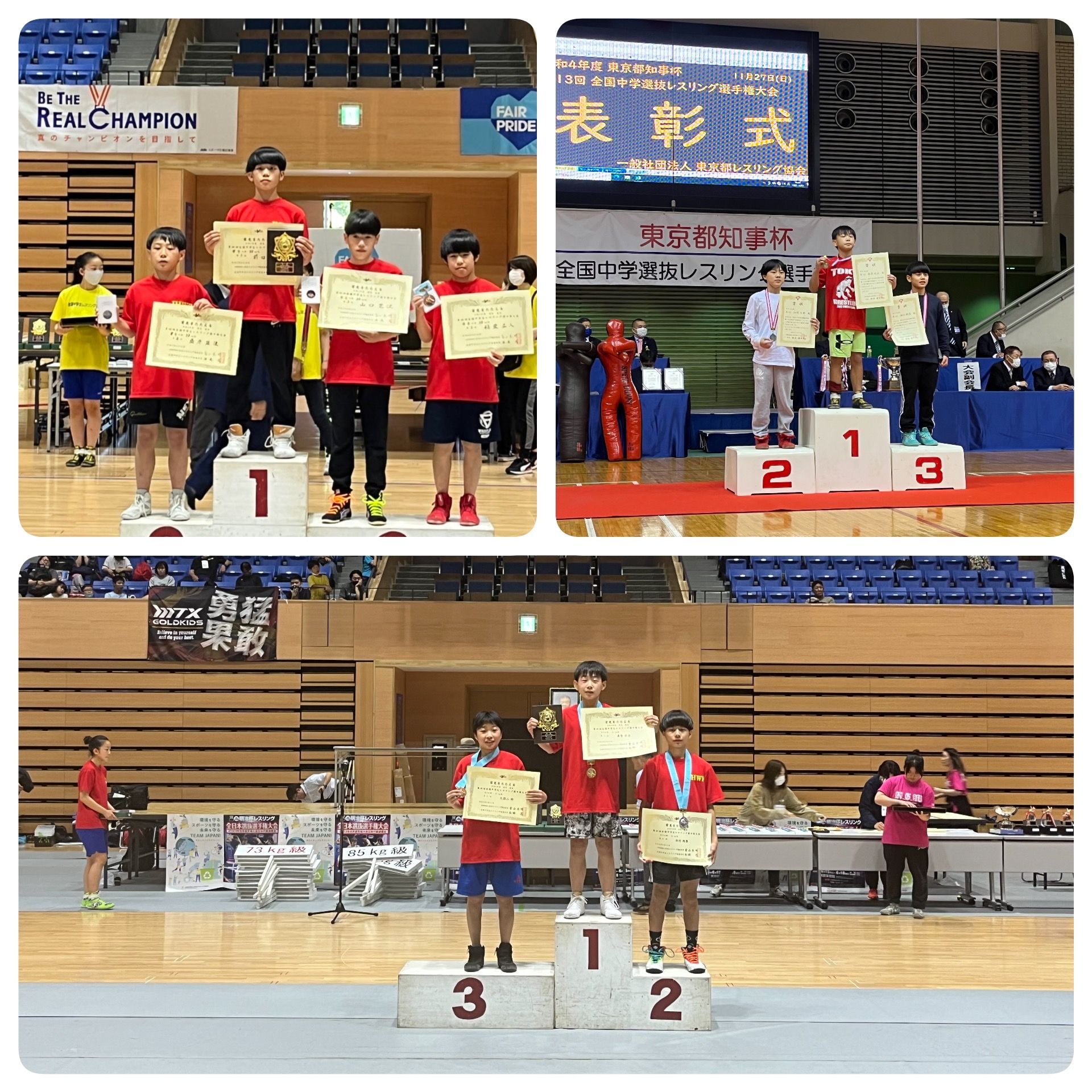 22年6月全国中学生レスリング選手権大会FS 38kgで準優勝、22年11月全国中学生選抜選手権大FS38kg級で初優勝!そして23年6月全国中学生レスリング選手権大会FS41kgでも初優勝と中学2冠を成しどけました。さらに23年11月に開催された全国中学生選抜選手権大会FS 44kgも、6試合を勝ち抜き優勝し神奈川初の中学生3冠を達成しました。